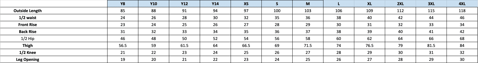 Y4, Y6, Y8, Y10, Y12, Y14, Y16, Small, Medium, Large, XL, 2XL, 3XL, 4XL, 5XL, 6XL